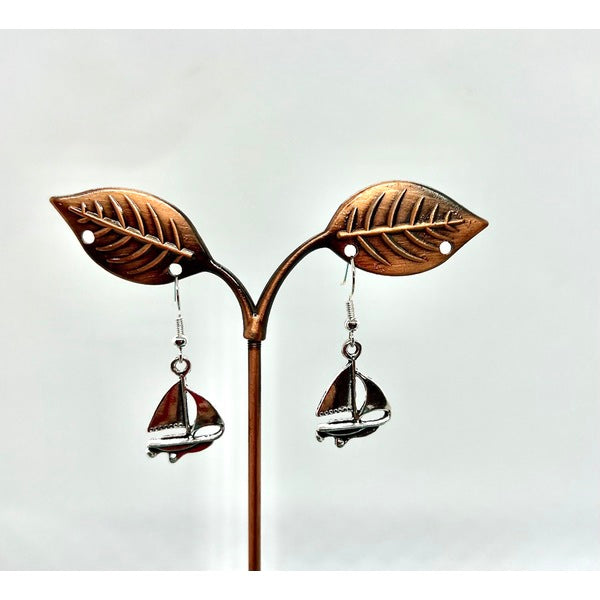 Silver tone sailing boat earrings. Hooks are nickel, lead and cadmium free.