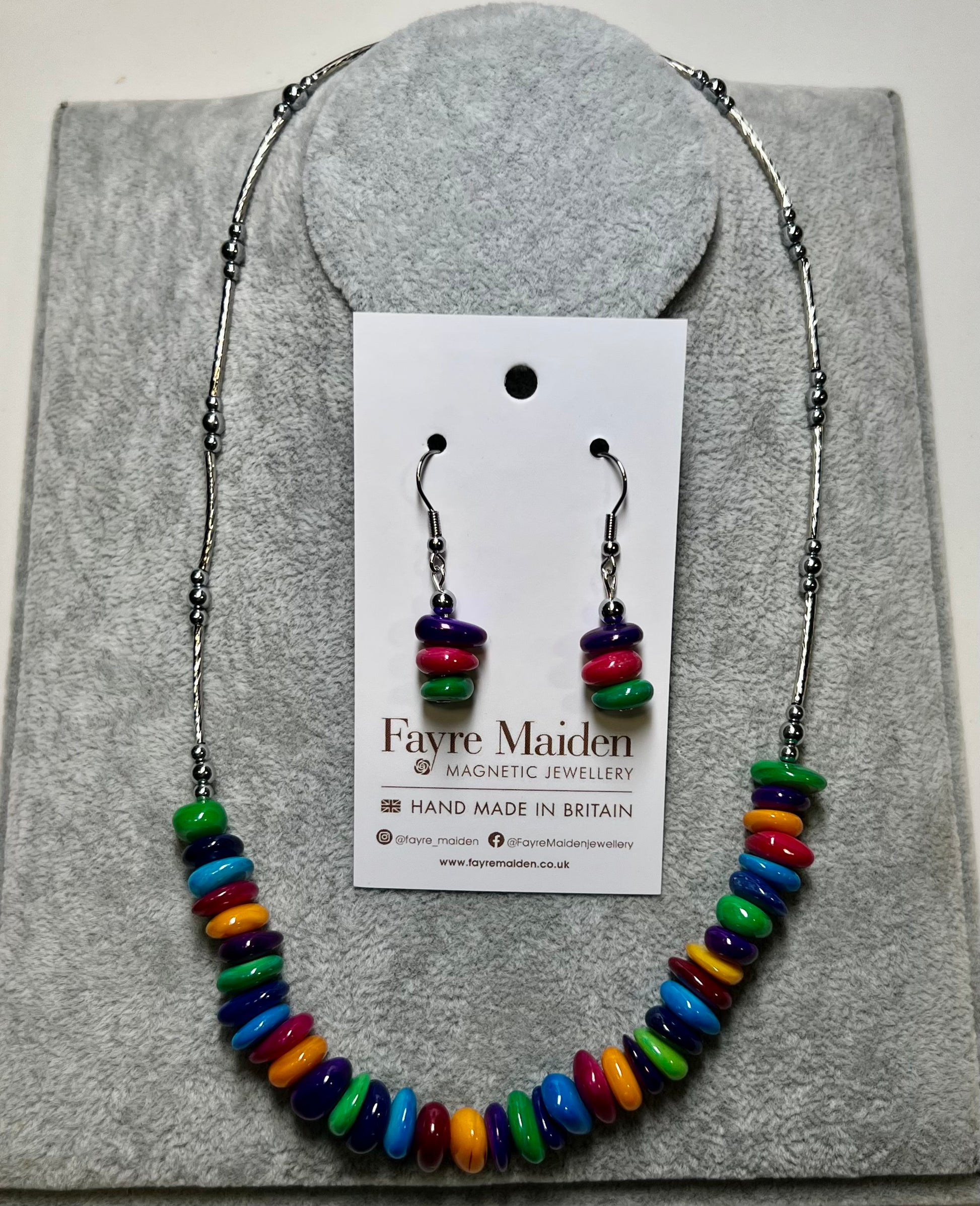 Necklace with magnetic clasp.
